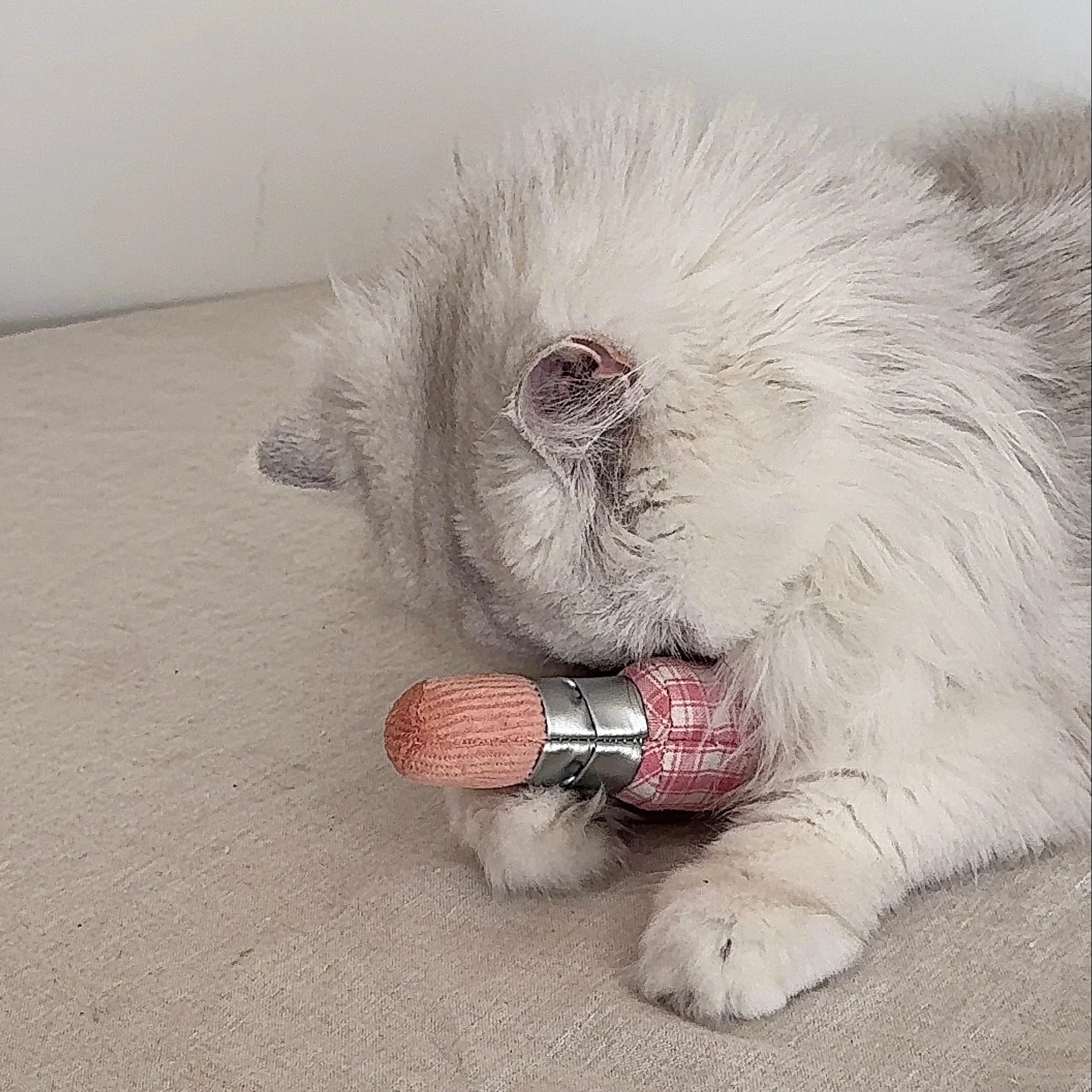 Even divas need their beauty sleep. And their playtime. This is for pouncing, batting, and carrying around like the prize it is. A soft plush lipstick made specifically for your feline friend.