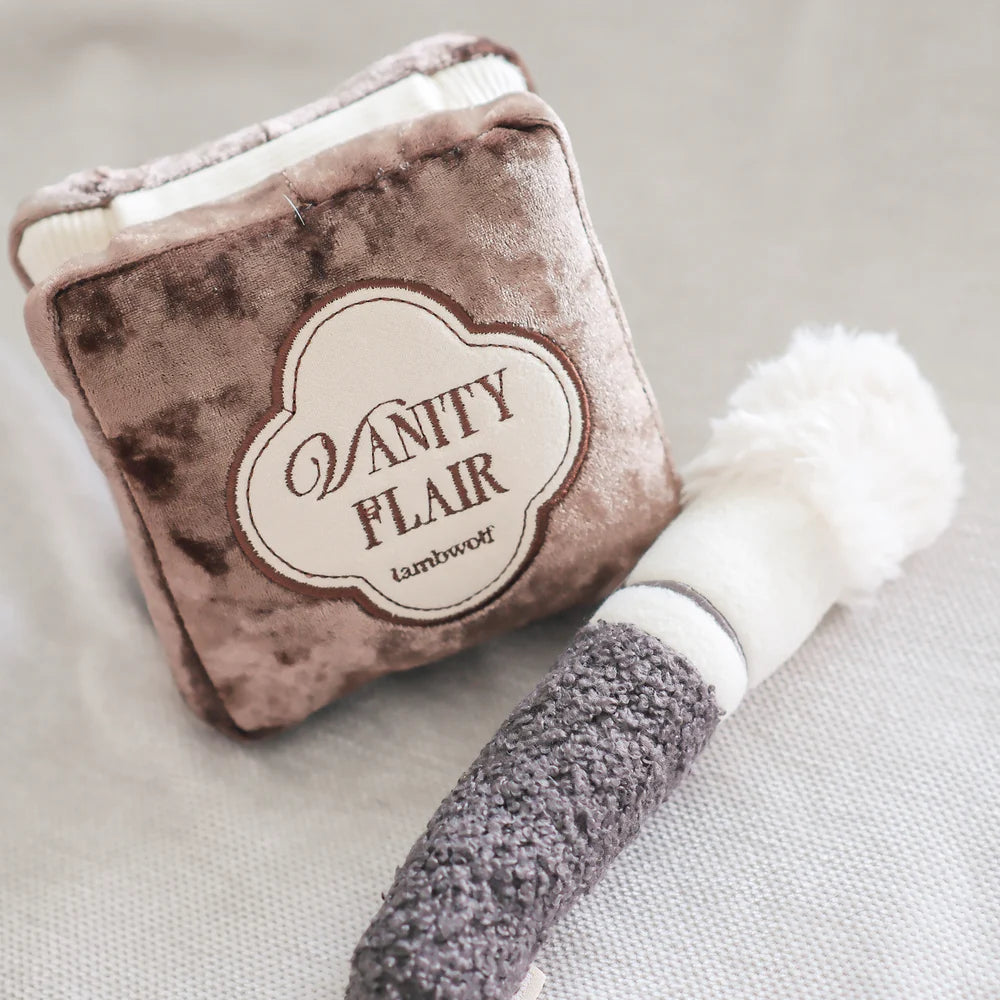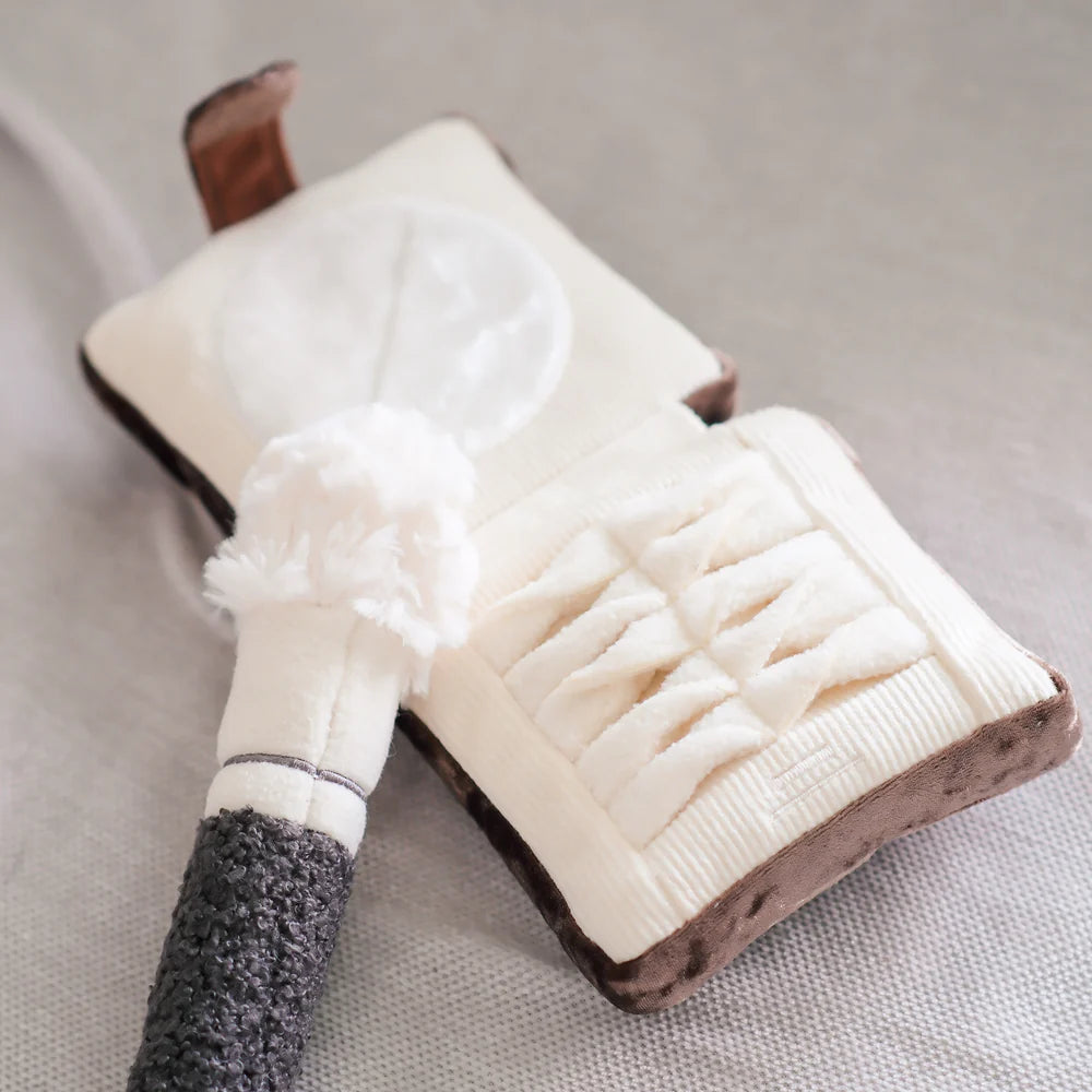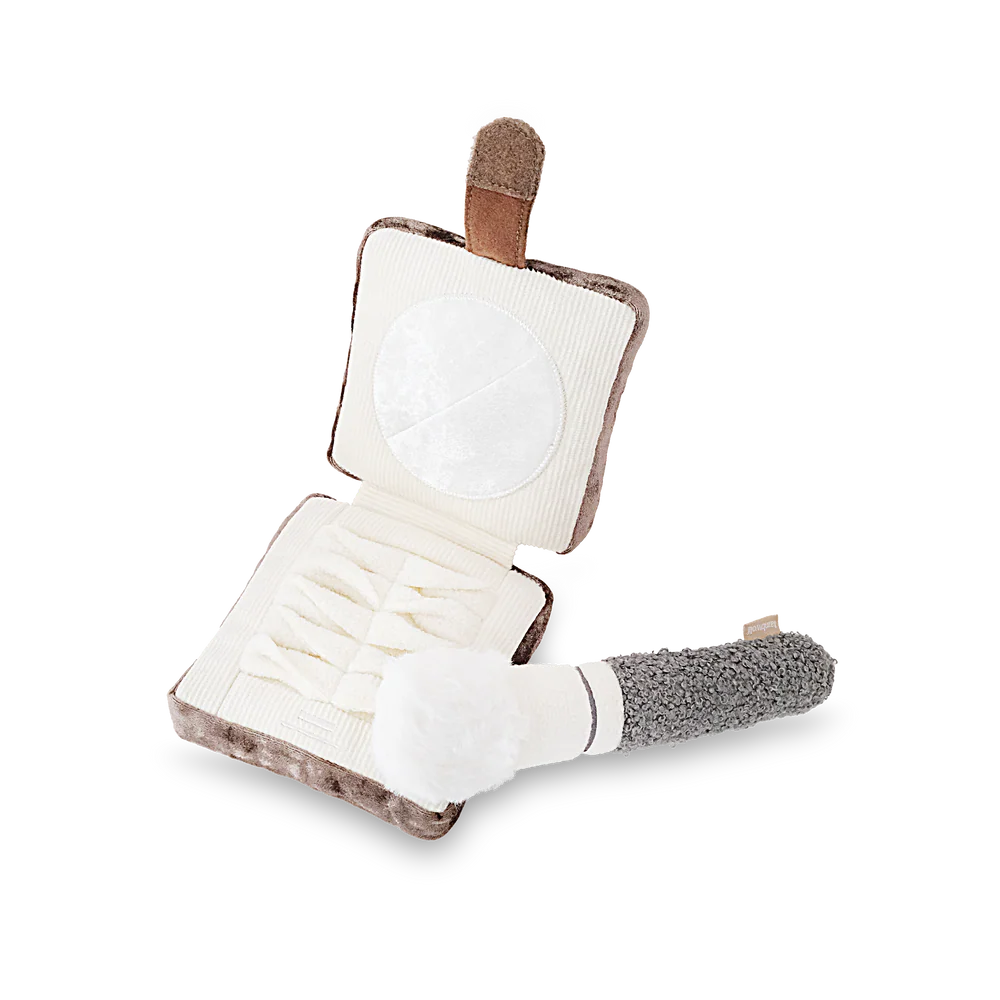 This isn't just for applying powder. It's textured for maximum chewing satisfaction and packed with our famous pop-inside squeaker. Tug it. Shake it. Squeak it.